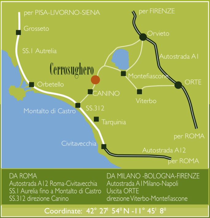 Die Cerrosughero-Farm befindet sich in der Gemeinde Canino im Herzen der Maremma Laziale an der Grenze zur Toskana in einem Gebiet mit hohem Olivenanbau und großem archäologischem und naturalistischem Interesse.